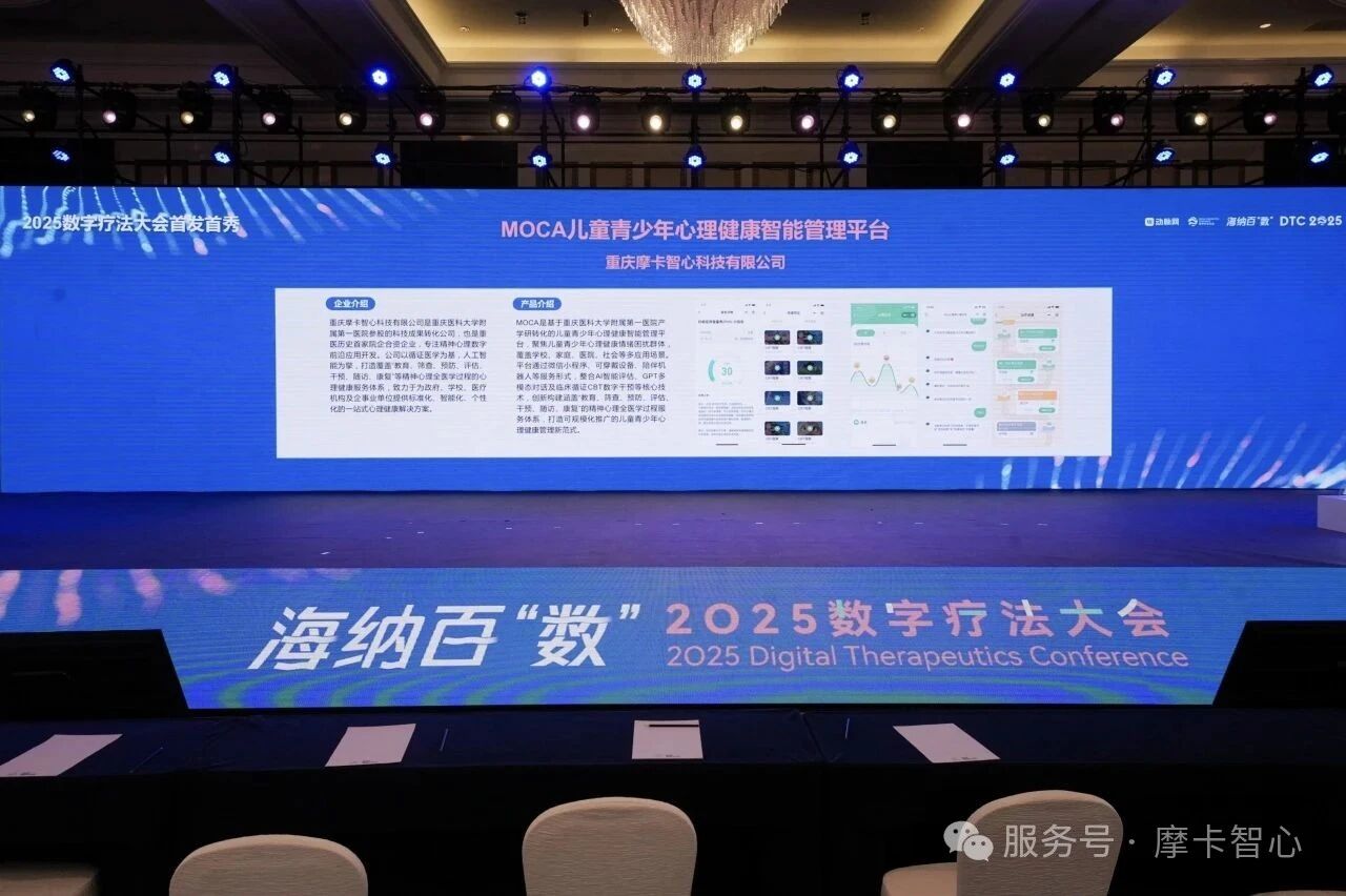 重庆摩卡智心科技有限公司(重医附一院首家科技成果转化企业)携核心产品——MOCA儿童青少年心理健康智能管理平台首发亮相。该平台聚焦儿童青少年抑郁焦虑,历经多年自主研发与技术沉淀,不断迭代升级,凭借创新应用模式与显著推广价值,成功入选“数字健康创新应用案例TOP10”,成为行业公认的创新标杆。